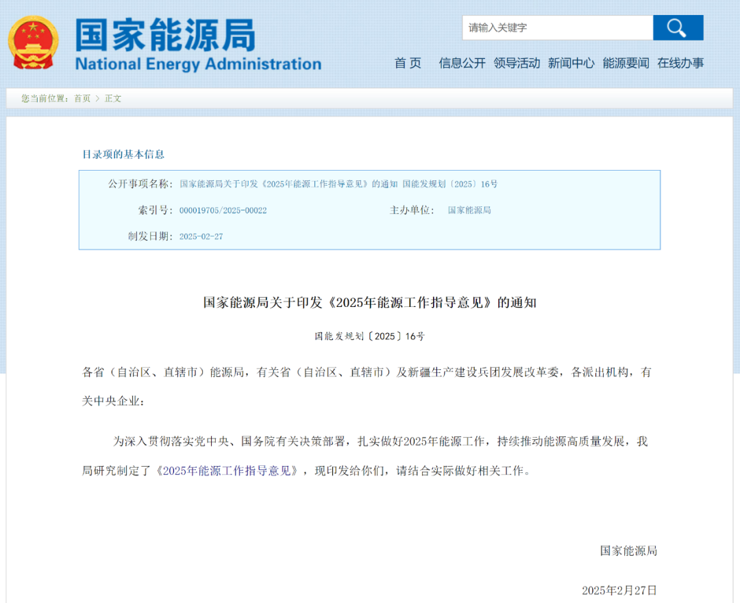 中国风电新闻网讯:2月27日,国度能源局发布《2025年能源责任提醒意见》的见告(以下简称《见告》)。
