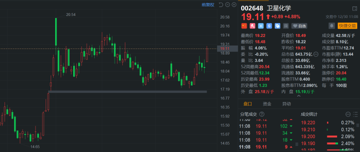 格隆汇12月30日|卫星化学(002648.SZ)涨超5%,现报19.11元创一个半月新高,成交额放大至8.2亿元,总市值644亿元。音尘上,国务院关税税则委员会日前发布《2025年关税调遣决议》,对935项商品执行低于最惠国税率的入口暂定税率,推动绿色低碳发展,镌汰乙烷、部分再生铜铝原料的入口关税。《决议》自2025年1月1日起执行。民生证券点评称,乙烷入口税率镌汰,公司资本有望受益,跟着新表情逐渐投产,异日成长可期,保管“保举”评级。(格隆汇)